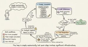 Về mặt cơ học, nó thường chỉ là một vòng while. Sự phức tạp nằm ở tất cả những gì vòng lặp quản lý, chứ không phải bản thân vòng lặp. Anthropic mô tả runtime của họ là “dumb loop” — toàn bộ trí thông minh nằm trong model. Harness chỉ quản lý các lượt (turns).