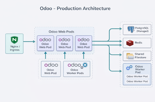 Tip thực chiến: Nếu bạn có job queue (OCA queue_job hoặc giải pháp nội bộ), worker pods scale theo queue depth.
