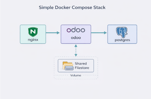 Tách tối thiểu 3 service: odoo, db, nginx. Nếu production thật, DB nên là managed (RDS/Cloud SQL).