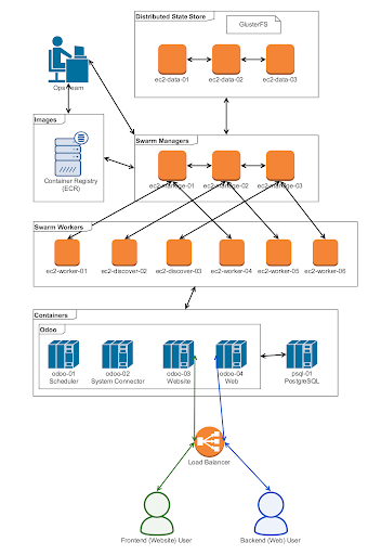 - Odoo Worker / Cron: xử lý background jobs, scheduled actions