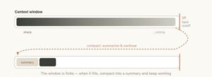 Cửa sổ ngữ cảnh có một giới hạn cứng, vì vậy khi bạn gần đạt đến giới hạn này, bạn sẽ cần tóm tắt tác vụ đang thực hiện thành một mô tả ngắn hơn và tiếp tục công việc trong một cửa sổ ngữ cảnh mới, chúng tôi gọi đây là compaction. Bạn cũng có thể tự kích hoạt compaction.